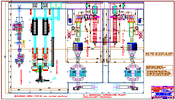 Here below the lay-out of the MSW PLATFORM with n.2 ROT200 lines with n.1 COPARM line and a detail of the separation line (COPARM press machine)